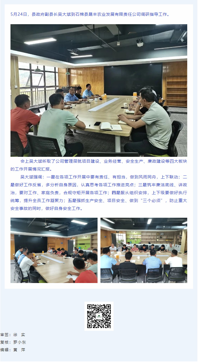 县政府副县长吴大斌到石棉县j9国际站官网入口农业发展有限责任公司调研指导工作