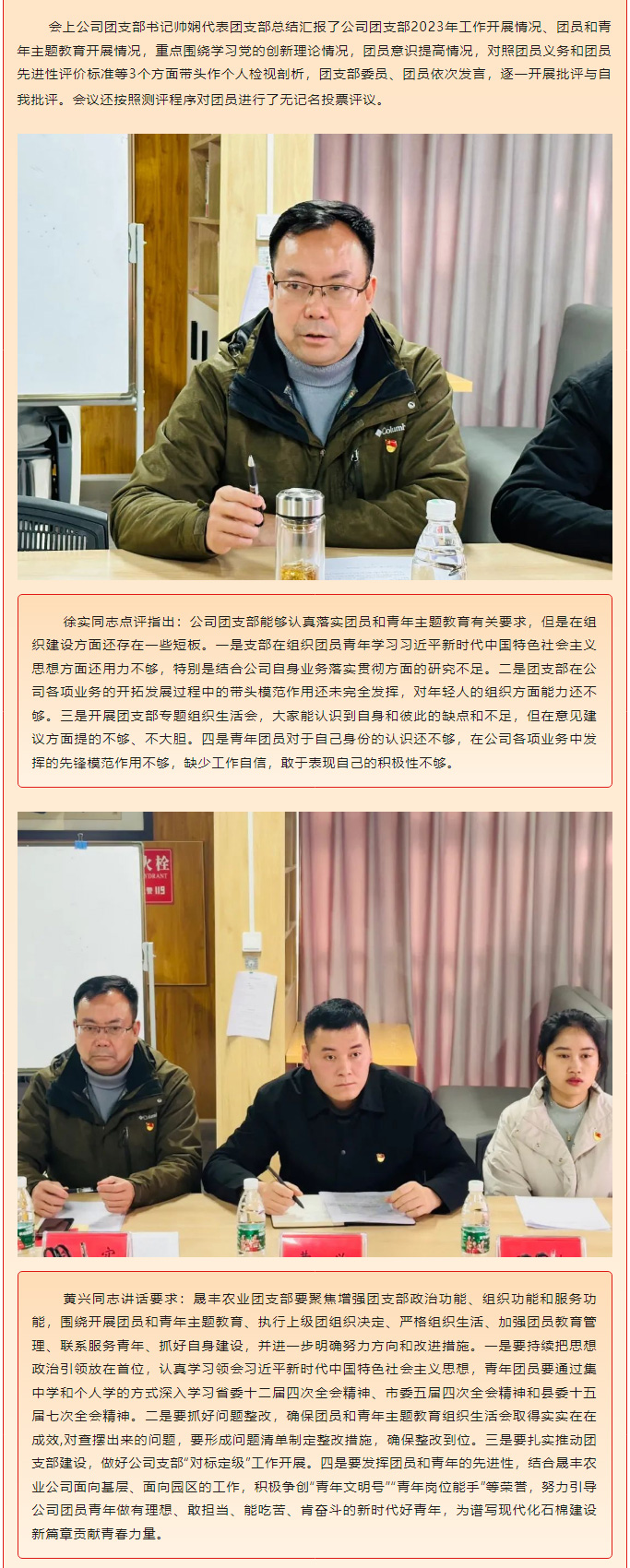 石棉j9国际站官网入口农业公司团支部召开团员和青年主题教育专题组织生活会