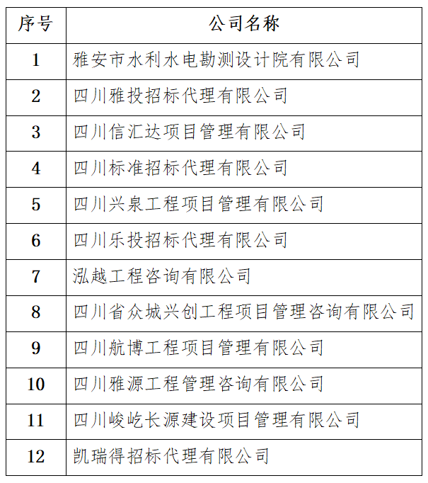 石棉县j9国际站官网入口农业发展有限责任公司2024年度招标代理机构入库根据2023年度招标代理机构入库要求及采购工作需求,通过入库资格审核及实地考察,2024年度拟入库的招标代理机构名单如下: