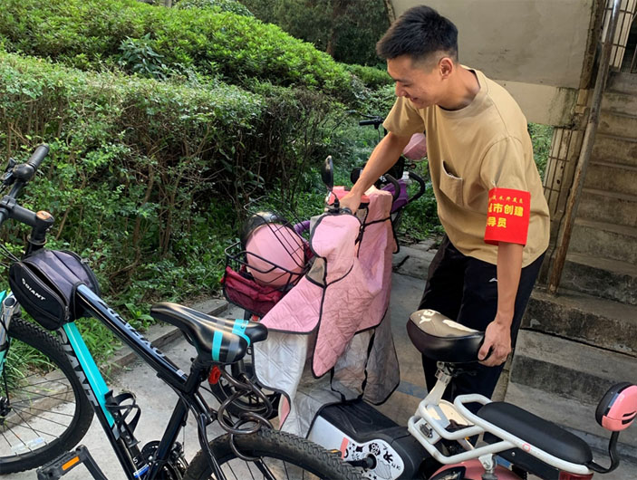 在社区工作人员的带领下,志愿者们按计划分工,迅速进入状态,尽管当日天气炎热,依然没有一丝懈怠,仔细清理小区公共区域的烟头、花坛内动物排泄物等垃圾;认真排查并归整小区内不规范停车现象,帮忙劝导小区内不文明停车行为,同时对小区内牛皮癣、基础设施破损、私拉乱接、飞线等进行排摸,以便社区工作人员后期工作的安排。