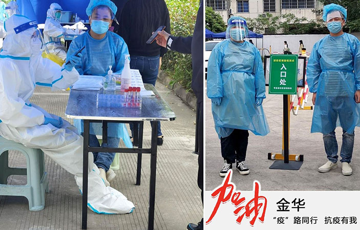 志愿者表示,特别荣幸在疫情特殊时期能够化身核酸检测服务人员助力社区核酸检测,为战胜疫情贡献自己的一份力量,加油,金华,“疫”路同行,抗疫有我。